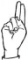На ћирилици написано МИЛИН ТЕШИЋ састоји се из 10 слова [?]. Исписано ћириличном једноручном азбуком за глувонеме: